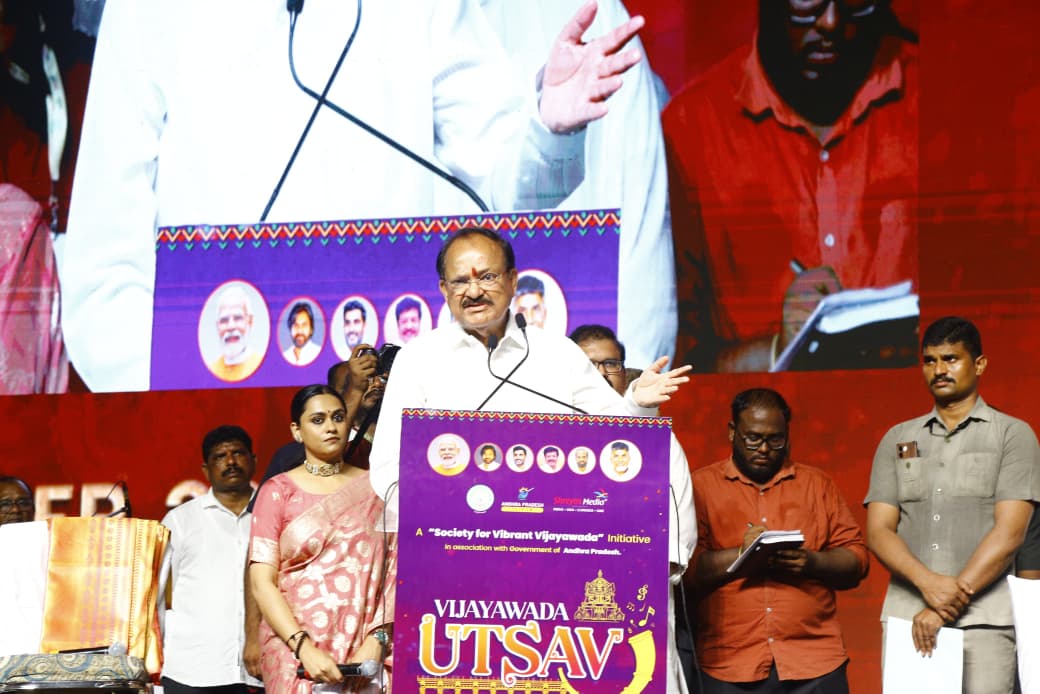 Naidu urged that Vijayawada Utsav should not only showcase the city’s glory but also serve as a platform to revive and promote Telugu language and culture. He called for preserving traditional art, dialect, attire, and heritage while passing on the city’s rich legacy to future generations. The festival, coinciding with Dasara celebrations, he said, will further spotlight Vijayawada on the world stage as a city of history, devotion, and culture.